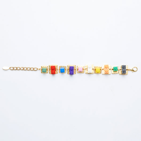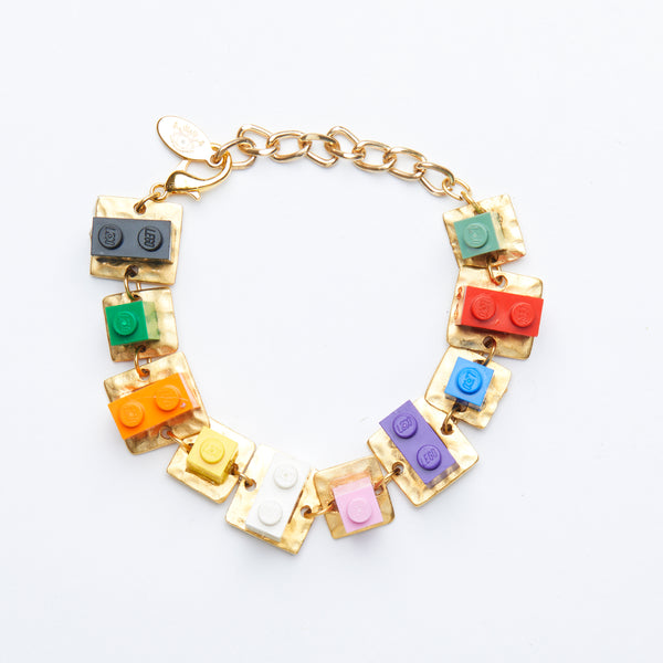 2 units & 1 unit lego bricks mounted on embossed gold metallic base, square shape